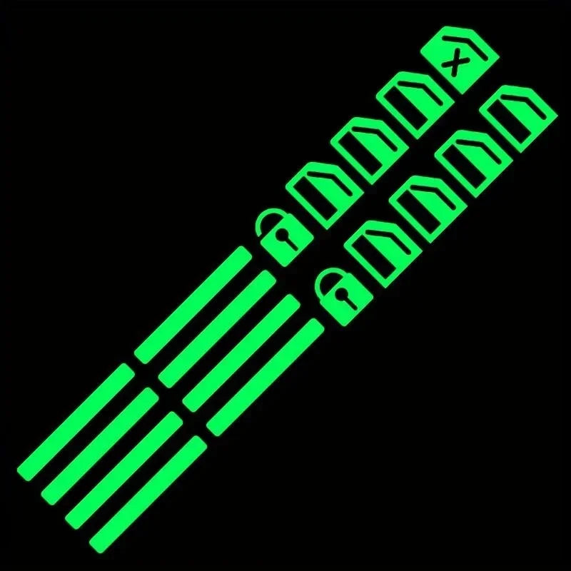 Design & Material: Thin, precisely cut adhesive decals shaped to match standard window, lock, and unlock icons. They utilize a fluorescent material that glows when ambient light is low.