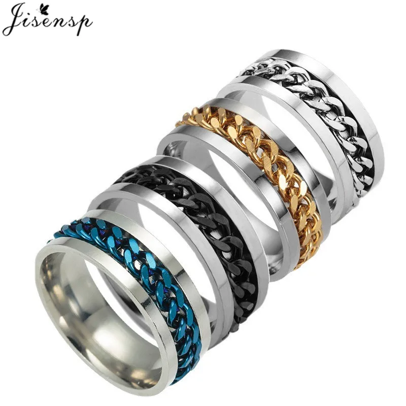This Chain Spinner Fidget Ring Collection is a bold, durable, and unique accessory that objectively offers both a clean, luxurious aesthetic and a practical, tactile function. It is an excellent present and accessory for men who appreciate robust and interactive accessories.