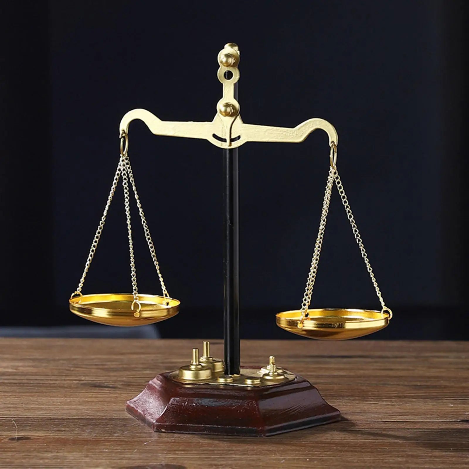 An elegant and historical desk accessory inspired by classic weighing instruments, often used as a symbol of justice, trade, and precision. This ornament features a delicate brass beam and pans suspended from a central column, all mounted on a rich, multi-sided wooden base. Its historical design makes it an exquisite piece of décor for professionals or collectors.