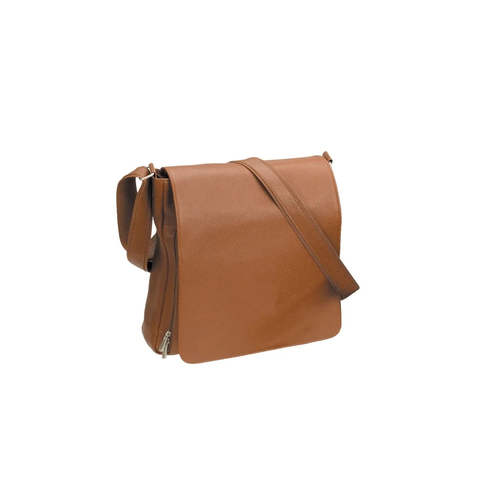 Design: Traditional messenger/satchel silhouette with a structured body and a full front flap closure.