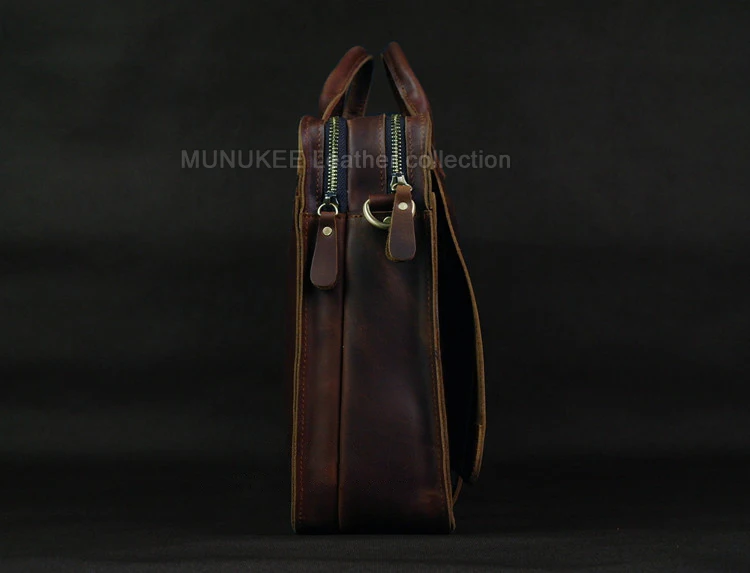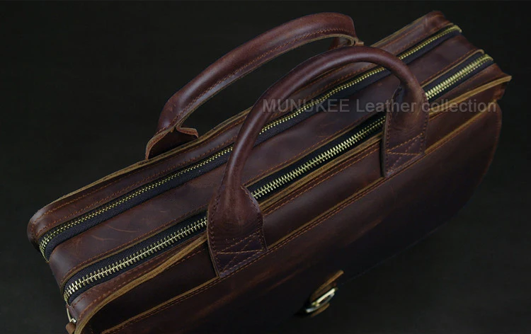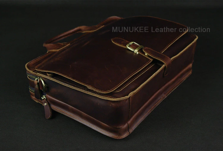 Construction: Made with thick, full-grain or high-quality distressed leather, reinforced stress points, and strong zippers, providing excellent durability and protection for electronics and documents (including full-sized laptops).