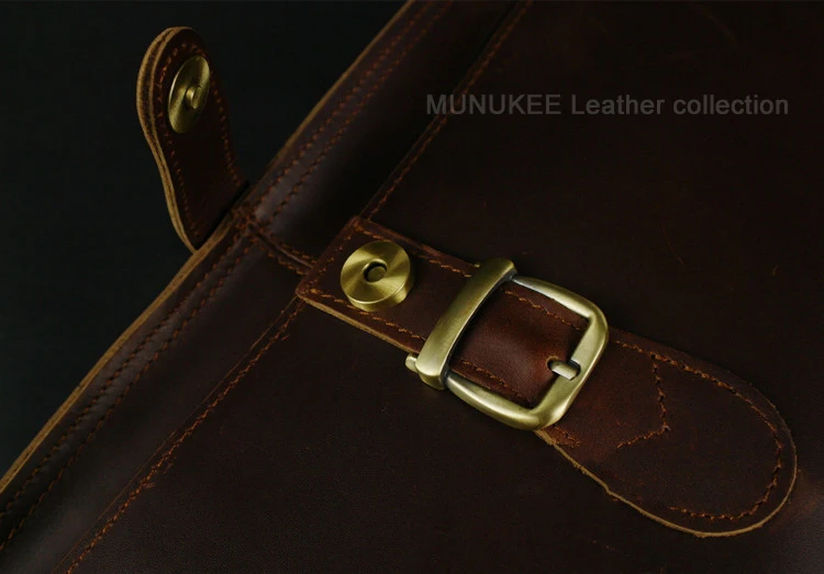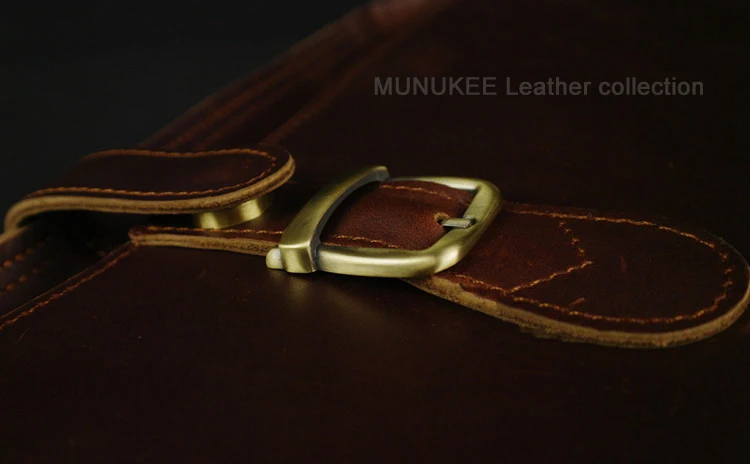 Design Variety: Features a deep, antique dark brown finish with a natural, aged texture, complemented by sturdy contrast stitching and robust metal hardware, creating a distinguished, timeless look.