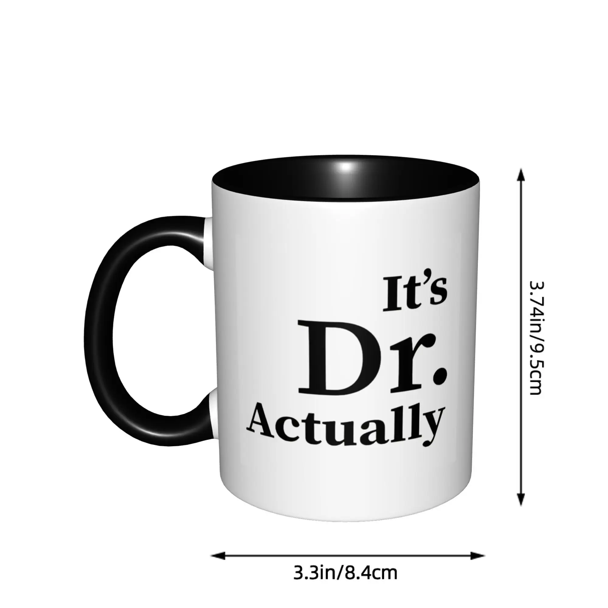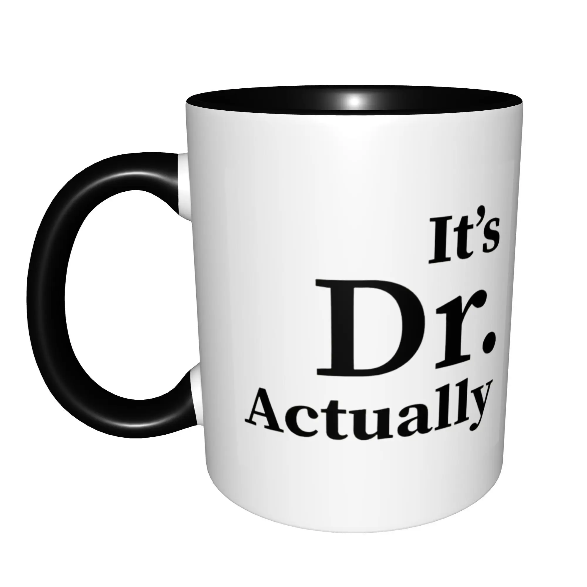 This assertive two-tone ceramic mug is designed for doctors who prefer clear professional recognition. Featuring the bold text, "It's Dr. Actually," it is a humorous yet proud statement piece. The contrasting black handle and interior provide a sleek, professional look suitable for any office or clinic setting.