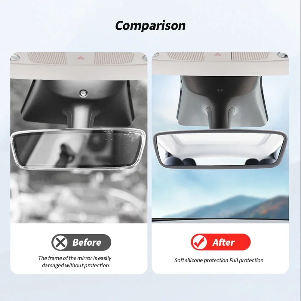 Functionality: Primarily a cosmetic Car Interior Decoration, framing the mirror to add a customized look. It protects the mirror edges from minor scuffs and potentially reduces edge glare (although not explicitly stated).