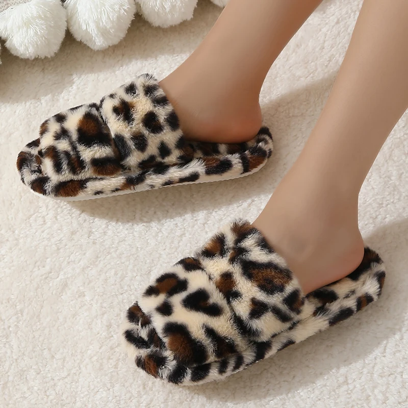Leopard Print Plush Faux Fur Home Slipper - 2 - gn | ONEFY.SHOP