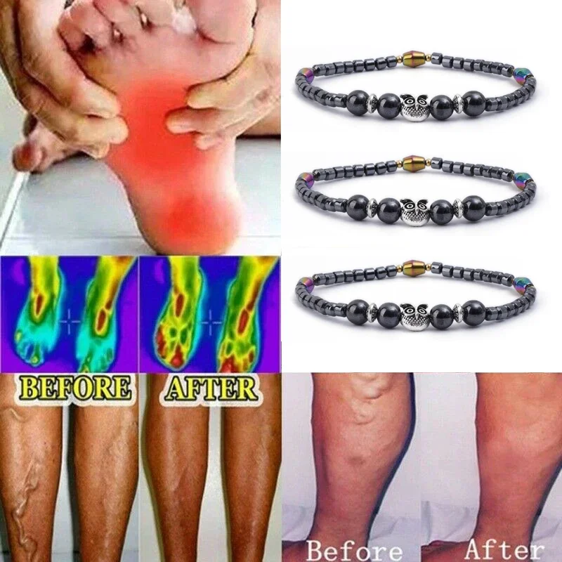 Product Theme: Wellness jewelry, magnetic therapy, holistic health, improved circulation, and hematite/natural stone accessory.
