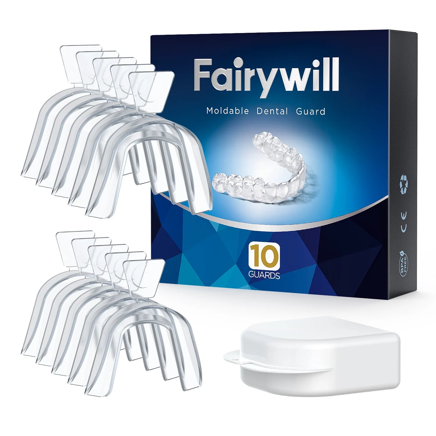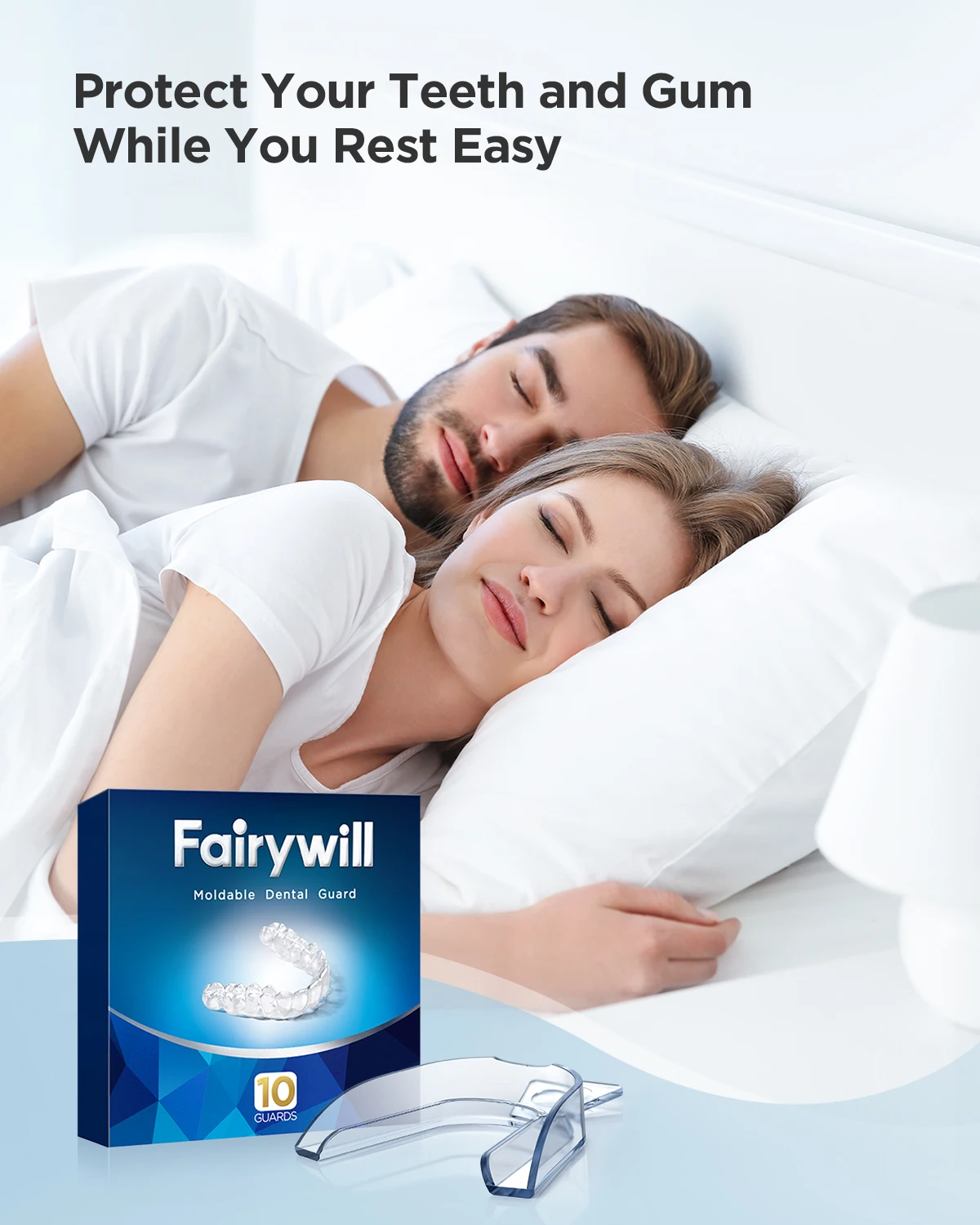 A set of 10 PCS moldable dental guards made from Medical Grade Material, designed for multiple oral uses. They are intended to be easily customized for a "Dentist Fit at Home".