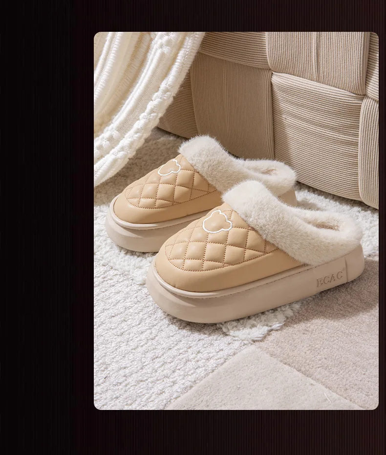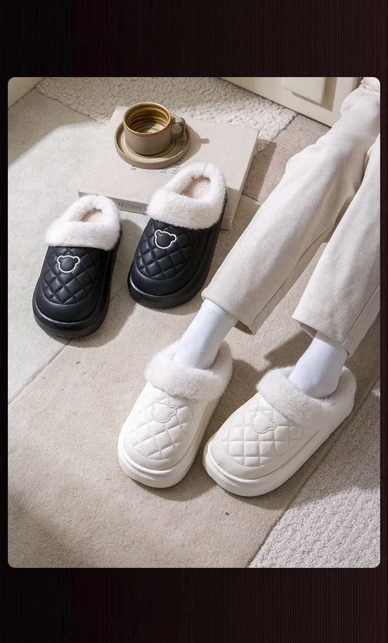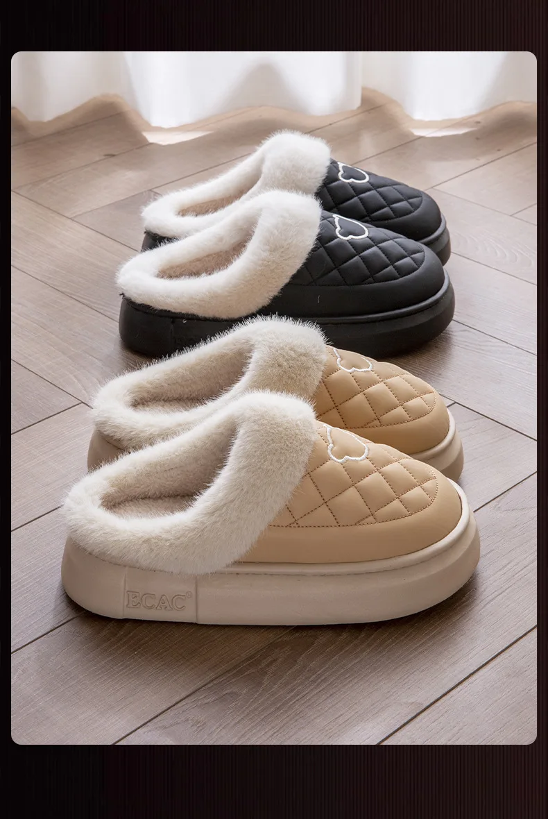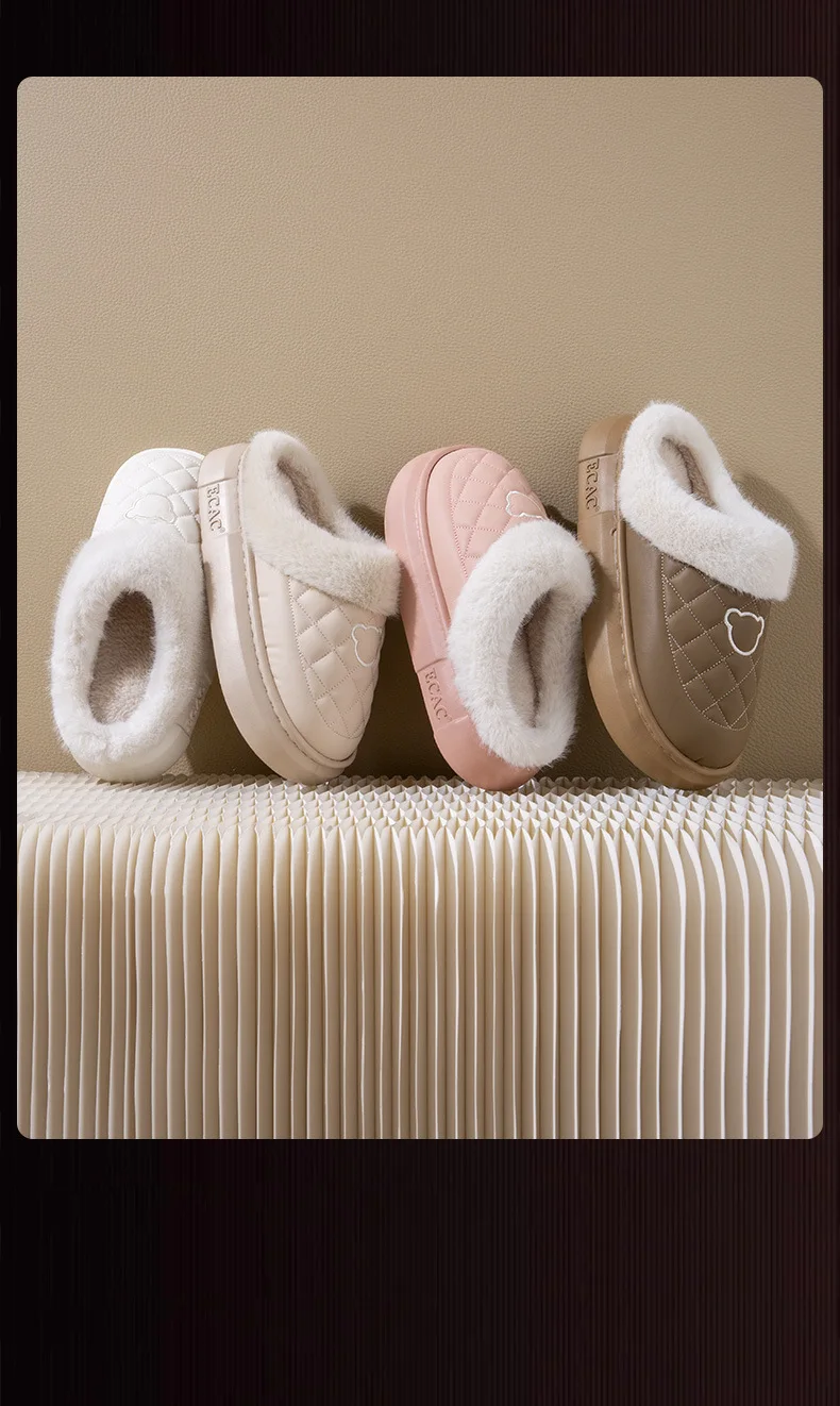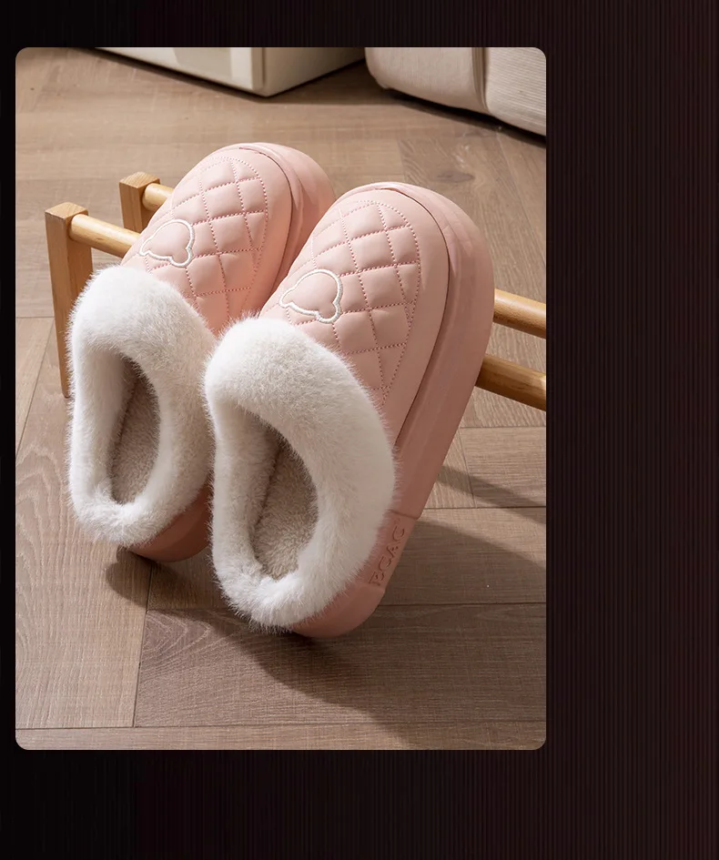 A collection of warm, fully-enclosed indoor slippers designed for ultimate winter comfort, featuring a cozy faux-fur lining and a durable, raised base for superior insulation and anti-slip safety.