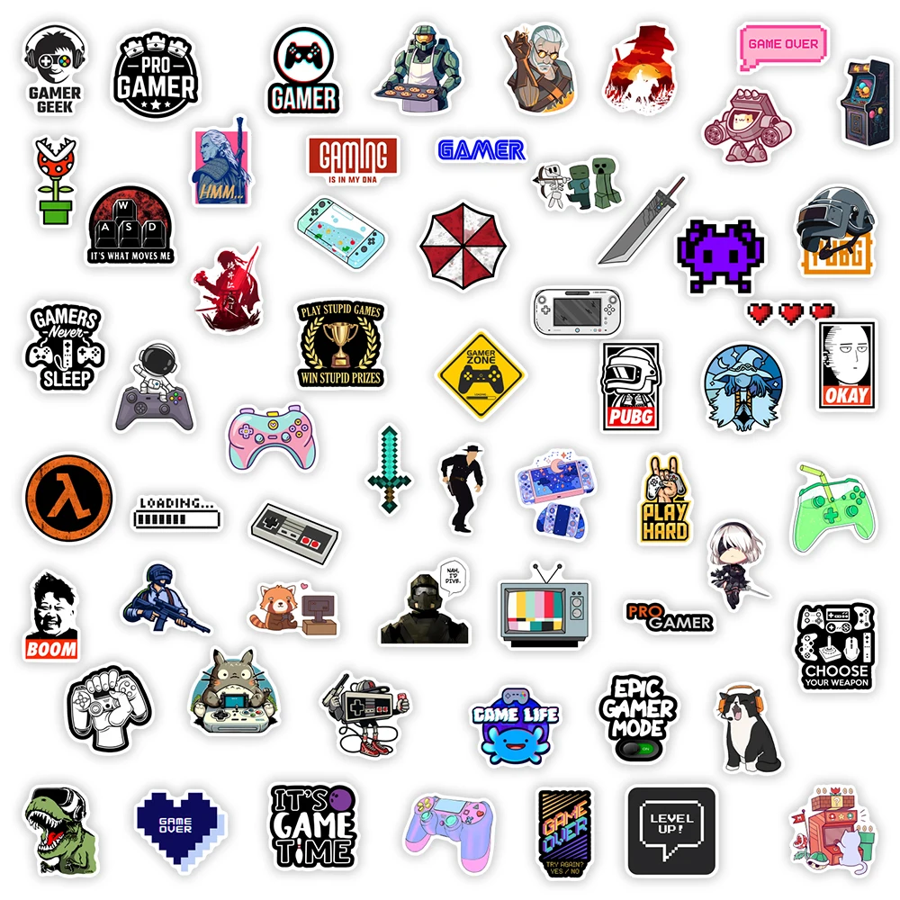 A massive and diverse collection of die-cut vinyl stickers featuring graphics inspired by video game culture, console gaming, arcade classics, and related internet memes. This set offers a wide variety of designs perfect for personalizing laptops, consoles, water bottles, and gear for any dedicated gamer.